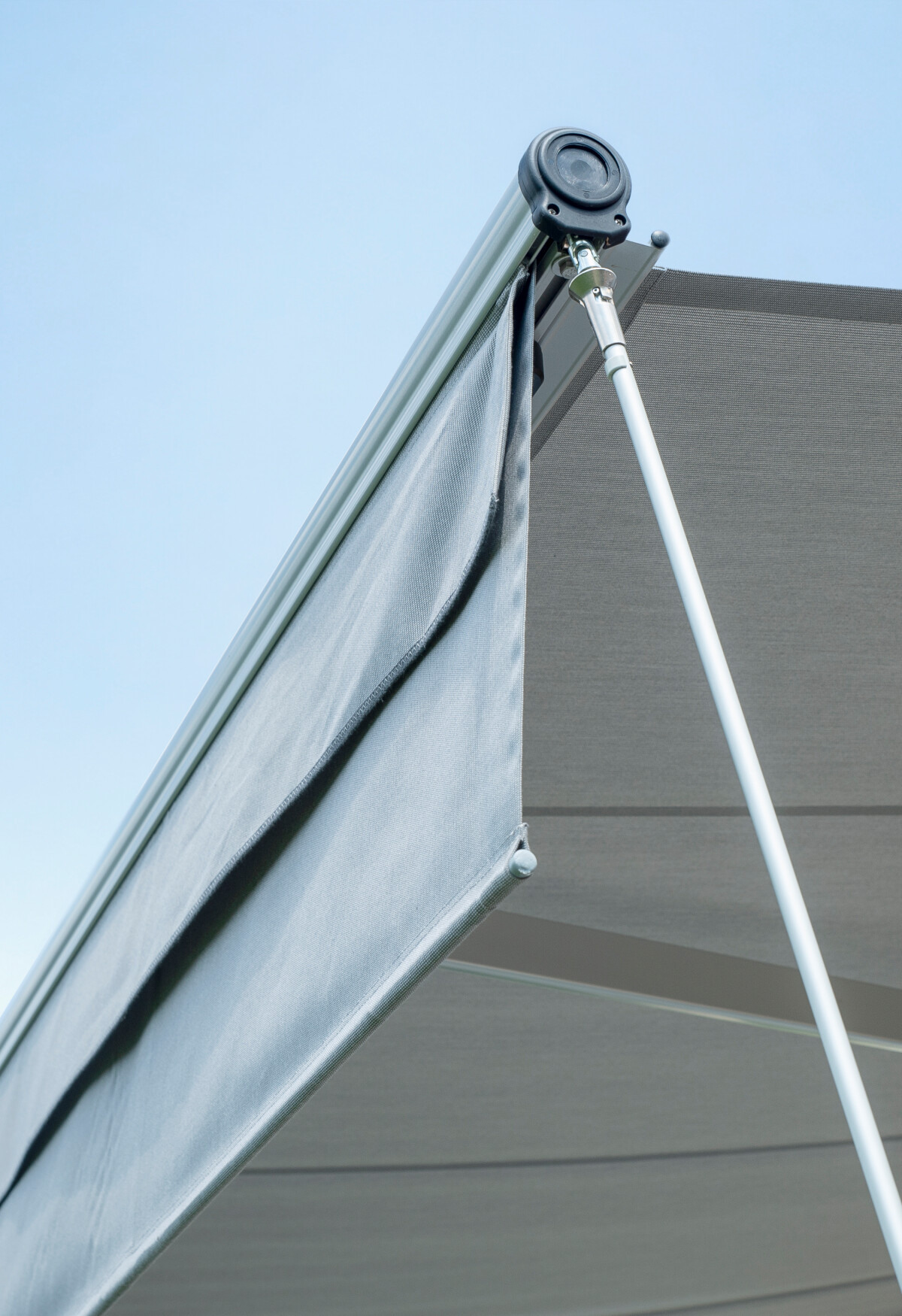 Der Gelenkarm spannt das Tuch und nimmt die Windbelastung auf. Dem entsprechend muss er hohen Kräften standhalten – und das konstant über viele Jahre hinweg! Deshalb besteht diese zentrale Komponente aus stranggepresstem und hochsteifem Qualitätsaluminium.