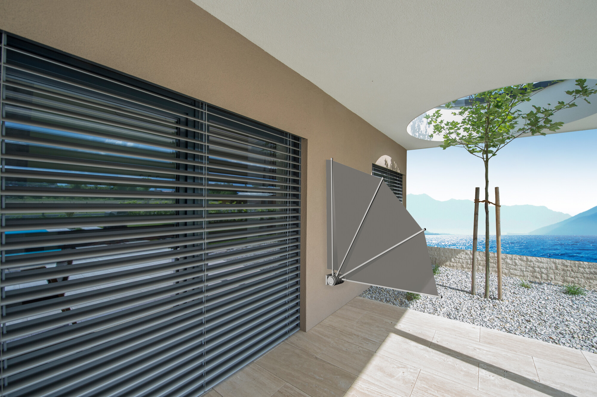 VALETTA CLASSIC: stabile Tragrohrmarkise für große Flächen – flexibel montierbar, mit einstellbarem Neigungswinkel und optionalem VERTIMA-Modul für zusätzlichen Sonnenschutz.