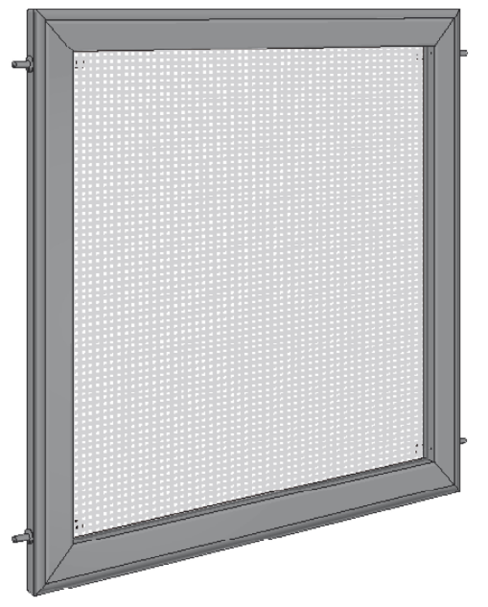 Festrahmen außen aufliegend, mit Haken oben und unten eingehängt. Handhabung des Rahmens von in